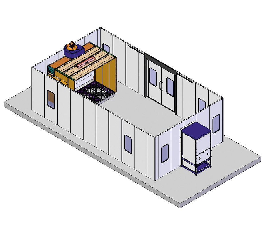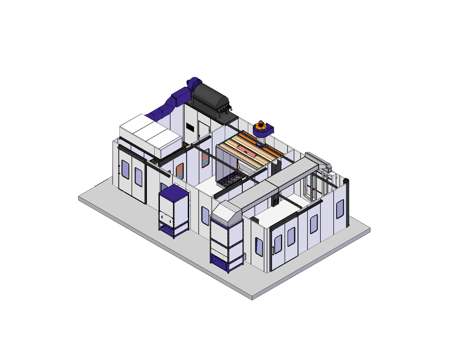 Seja com setores independentes ou integrados a cabine pressurizada pode ser adaptada de acordo com as necessidades do seu processo. Esta configuração permite ganhar produtividade e qualidade de acabamento com controle personalizado de todo o processo.