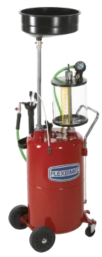 Unidade combinada para coleta e sucção de óleo usado, com reservatório de 80 litros, vasilha ampla de 10 litros, câmara de inspeção transparente e descarte pneumático. Ideal para oficinas que priorizam eficiência e organização.